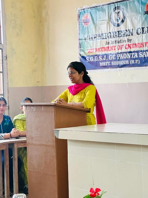 M.sc 3rd through PPT. The president of chemigreen club, Palak ( B.Sc 3 rd
