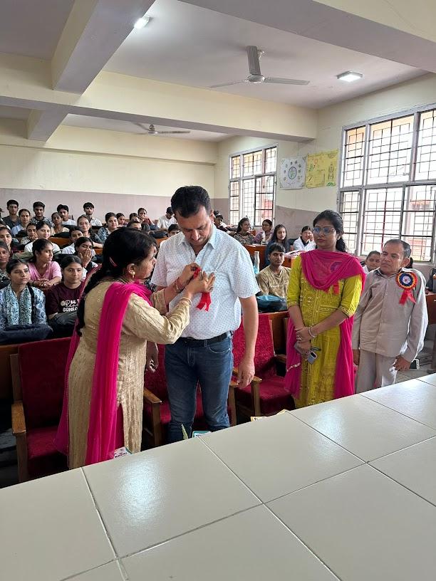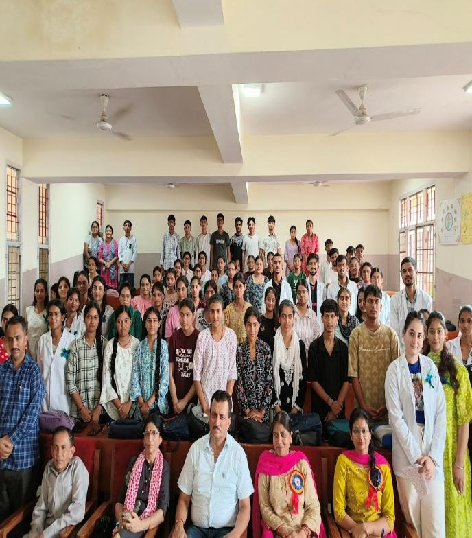Sharma and other distinguished guests and newly joined students of B. Sc1st year by Gargi and Mehak of M.Sc