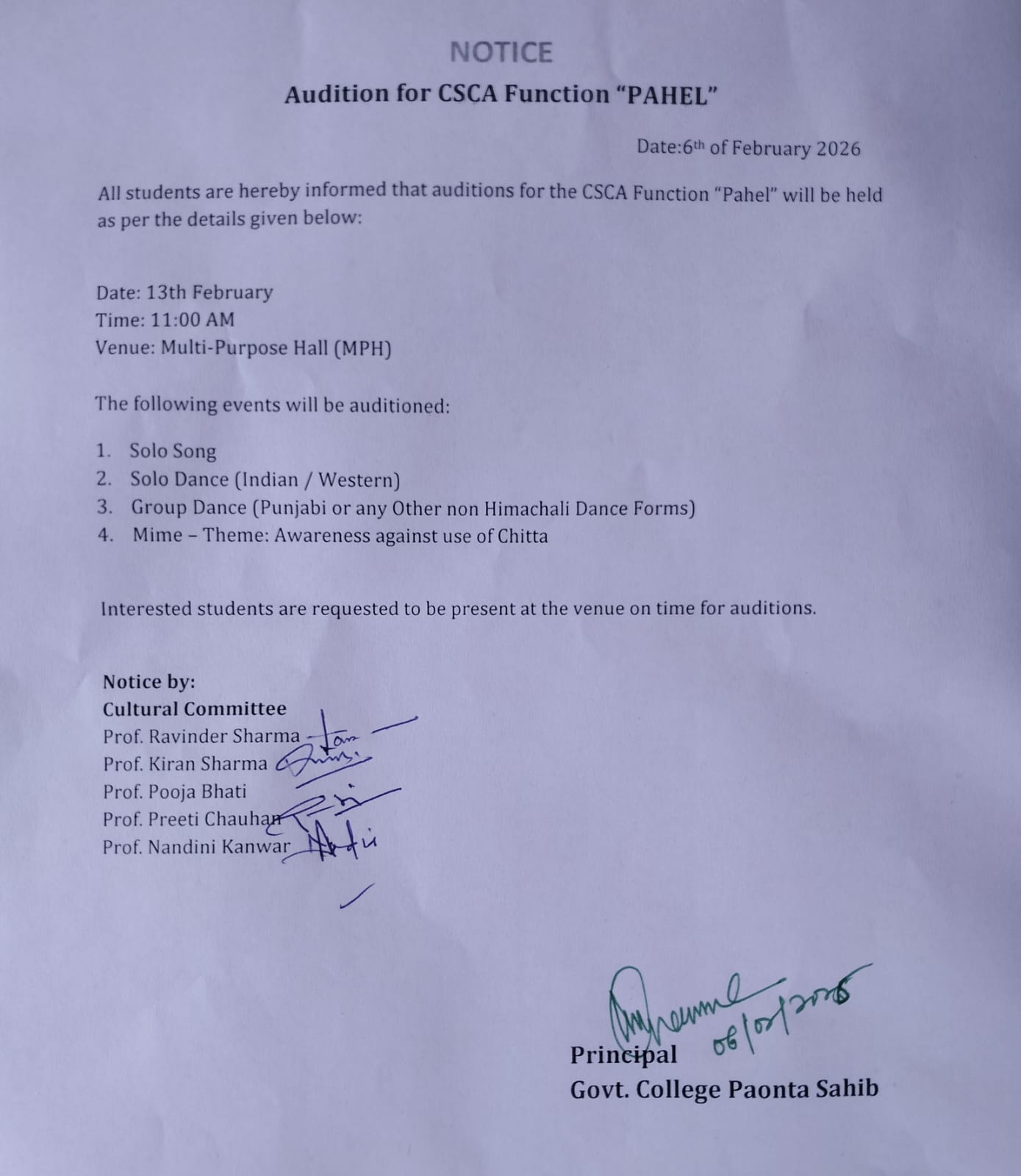 • Notice regarding bringing of Motorbikes or Scooties inside the college campus