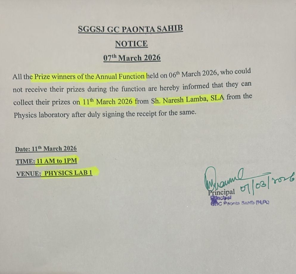 • Notice for Prize winners of Annual function