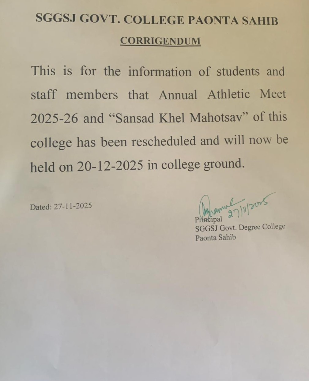 • Amendment-Corrigendum to the Upcoming Events